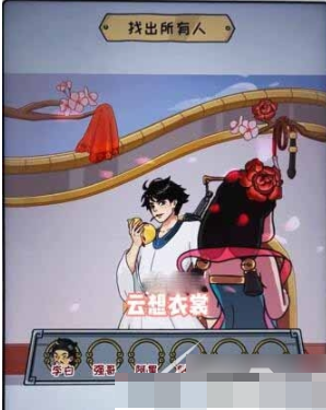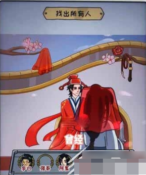 4、点击左侧人物到黑色长发古代女,将树枝上的红盖头给她走一个,门边人物衬衫男就会变为阿星。