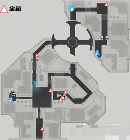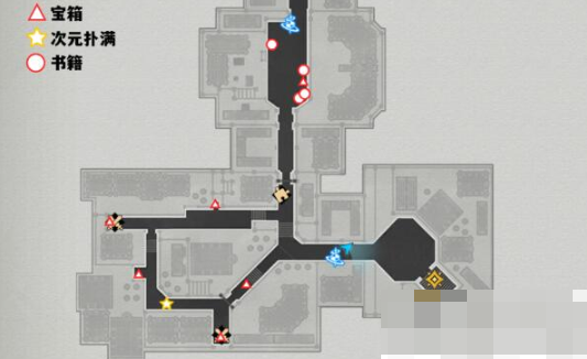 打完这个敌人,这个地方探索的就差不多了,所以『残响回廊』的『宝箱』与『书籍』分布如下图