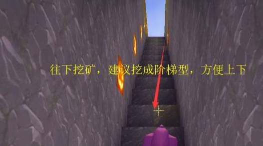 ②直接往下挖矿,挖的时候建议完成阶梯状,方便上下。