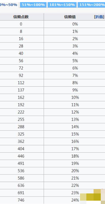 干员的信赖值由干员的信赖点数确定、两者之间的对应关系大致如下:
