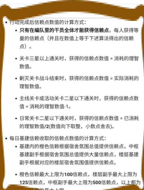 1、只有在编队里的干员全体才能获得信赖点、每人获得等量的信赖点(并且在数值上等于下述算法得出的信赖点)。