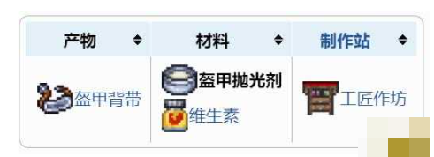 制作:1个盔甲抛光剂和1个维生素,在工匠作坊可以合成1个盔甲背带。