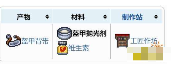 2、盔甲背带由1个盔甲抛光剂和1个维生素在工匠作坊合成,