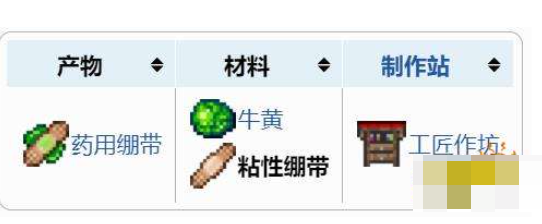 3、药用绷带由1个牛黄和1个粘性绷带,在工匠作坊合成获得,
