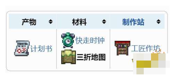 4、计划书由1个快走时钟和1个三折地图,在工匠作坊合成获得,