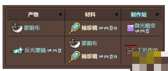 6、反光墨镜由1个蒙眼布和1个袖珍镜在工匠作坊合成,