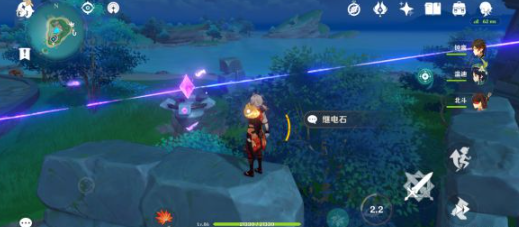 可以让人物带着继电石3号,在O点和雷灵中间沾上雷附着状态,在和C点拉扯连线到极限位置的时候再把身上的3号继电石放下来