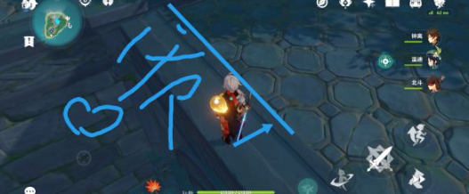 2号石头需要在接近O点的平台空中起跳,万叶点按起跳略超出平台即可