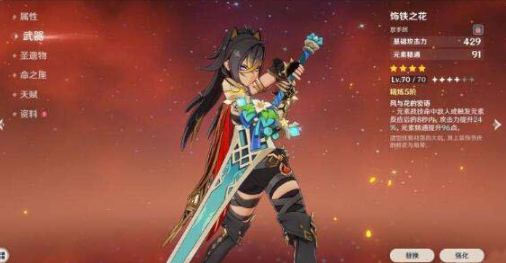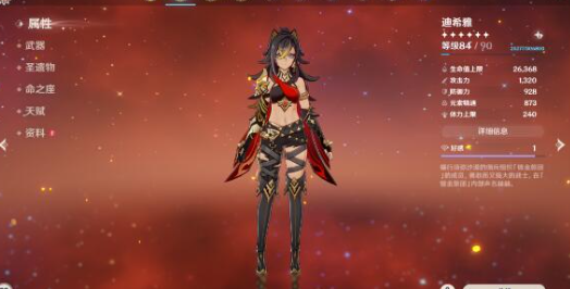 圣遗物是花神套,武器是70级的活动武器,自身等级因为比较仓促所以只有84级,提升到90级应该会有较大提升。