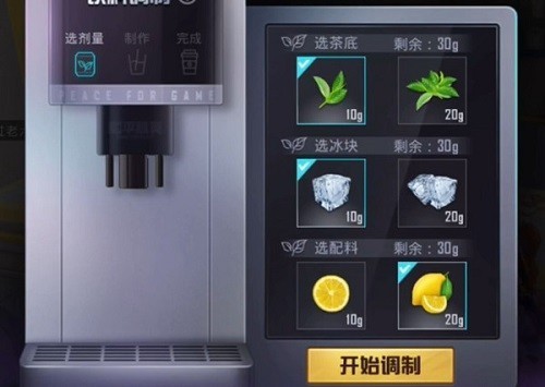 这个饮料机是在13号更新之后的新的玩法,这个调配的配方是很简单的,一共有三个选项,茶叶,冰块,还有柠檬