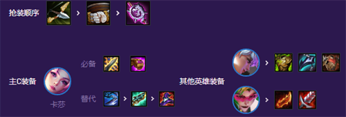 卡莎本身技能类似羊刀加攻速效果,技能基本都是AP伤害,所以需要一个减魔抗的装备,配合法爆的高爆发可以秒杀前排。反观薇恩的攻速很慢但技能是真实伤害,需要攻速装和续航装。锐雯技能效果需要自身血量高于对方才能造成额外伤害所以狂徒很合适。反甲又比较克制当前热门装备法爆,龙牙比较克制法系,三星带这三件特别肉。