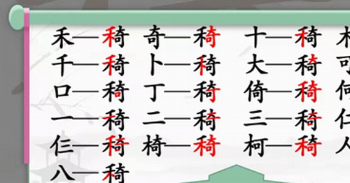 4、禾中可以找出单人旁,单人旁加奇是倚,加可是何,加二是仁,加三是仨。木加奇是椅,木加可是柯