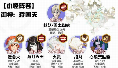 因幡锁三技能,帝释天自动妖术让天狗和分身互相触发月华之陨/沧浪击杀boss。需要赌一些帝/系统寻的招财保证供火。天狗魅妖/雪荒骷髅面板*1.1<纯魅/雪,则不带荒骷髅两件套。有条件可为式神携带地震鲍两件套减少扣血。