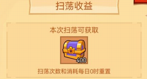 4、宝箱是后续游戏中获取装备、经验的唯一途径,是获取金币、附魔材料的主要途径,建议每天晚上野外首领过不去的时候再扫荡,扫荡4次即可,再多就不划算了。