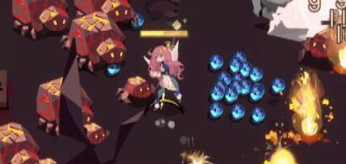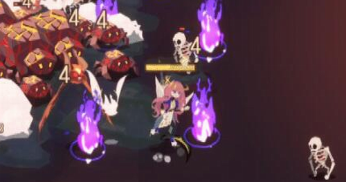 效果:向后方发射火花状投掷物,落地后会变为一团火焰,吸收击杀的敌人经验,经验按比例转换成金钱。