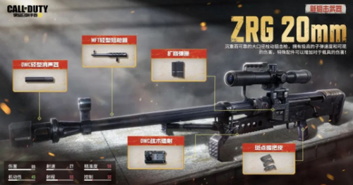 情报显示,ZRG 20mm是一把拥有可观伤害的大口径栓动狙击枪,虽然沉重,但是在使命战场中子弹速度较快,装备特殊配件还可以增加其对于载具的伤害。“口径即正义”!