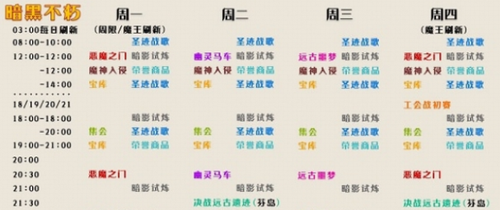 1、每周一周四,火男冰女等8人boss刷新,记得战团打。