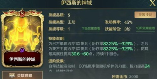 以埃及艳后为例,其自带技能【伊西斯的神域】可以为主将稳定提供治疗和属性加成,搭配上【尼普顿庇佑】可以进一步提高主将属性并能为其清除沉默效果。