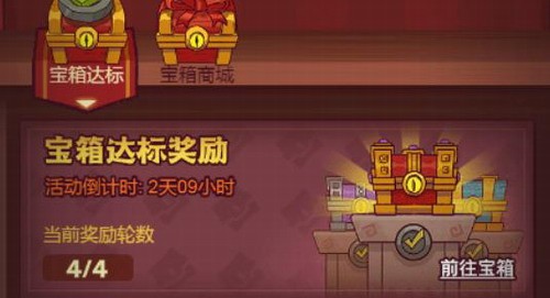宝箱达标:宝箱开启积分达到对应的积分将会获取一系列丰富的奖励,一共可以完成四轮