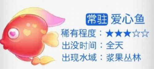 3.爱心鱼是常驻鱼,稀有度三颗星。