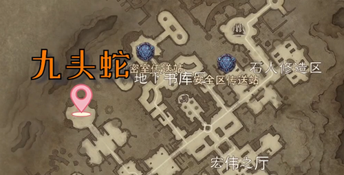 1、多头蛇的位置在【库勒的藏书馆】中,击杀之后有概率掉落传奇装备。