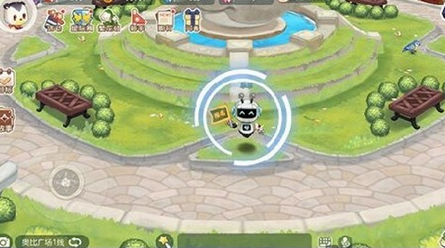 4、点击喷泉中心的机器人即可报名参加第一届的星际大赛啦。