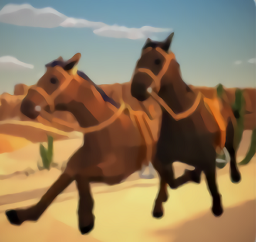 游戏画面精美很有西部牛仔的风情,控制角色在小路上骑马,躲避障碍物,跟随背景音乐欣赏美丽的风景,也是一种享受。
