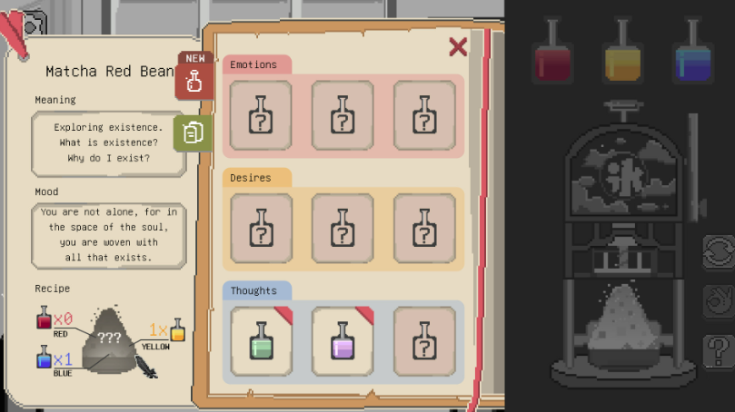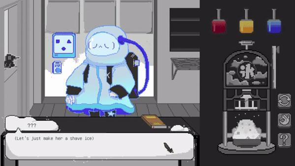 随着故事的展开,收集新颖的调色技巧及其含义。根据顾客的询问选择刨冰的颜色,探索这个意识世界、你的身份以及隐藏在刨冰店背后的真相之间的联系。