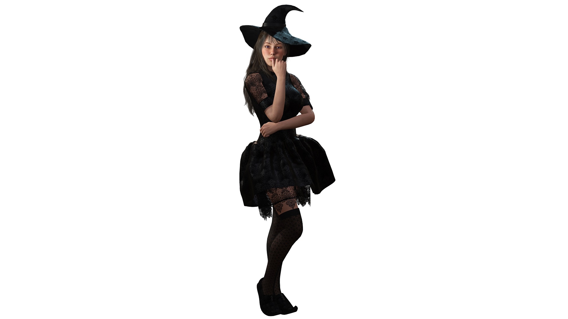 在一年中最黑暗的夜晚,Catherine Markwell 穿越古老的森林,前往一座神秘的废弃城堡。她身着一袭黑色、贴身的连衣裙,搭配金色细节,与尖顶的帽子一同散发出神秘气息。在这凉风轻拂的夜晚,她感受到衣物的轻柔触感,心中充满了对未知的好奇。