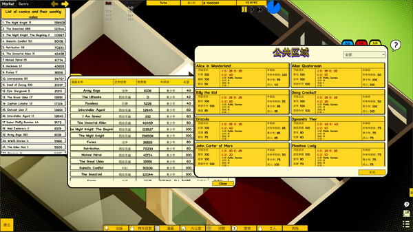 模拟真实的漫画市场,读者口味变化和AI公司竞争使市场动态变化,增加游戏的挑战性和策略性,玩家需不断调整经营策略以适应市场。