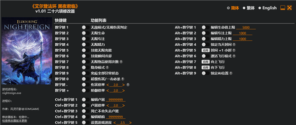 艾尔登法环黑夜君临二十六项修改器功能介绍