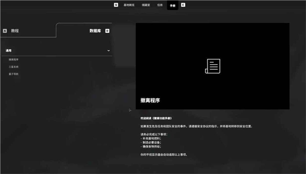 打开日志在手册找到【撤离程序】并接取任务【生存基础】。
