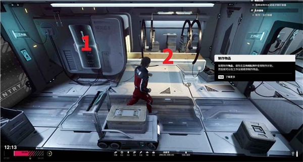 退出菜单,与数字2标注的流水线互动,花费一定时间制作伫列内的物品。