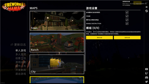 烟花模拟器(Fireworks Mania)是一款小型休闲爆炸模拟游戏,支持单人模式、多人联机模式。在这里玩家可以选择不同的场景,并将火箭烟花、组合烟花、鞭炮、烟雾弹、礼花弹、发射炮筒、管道烟花等系列任意放置在场景地图内,使用点火器点燃烟花即可释放,欣赏烟花在夜晚的天空上灿烂的花火!此外,你还可以在游戏中筹备属于你的烟火表演,体验不一样的乐趣!当然,烟花模拟器游戏还支持使用烟花炸毁地图中的内容,像房子、汽车等!