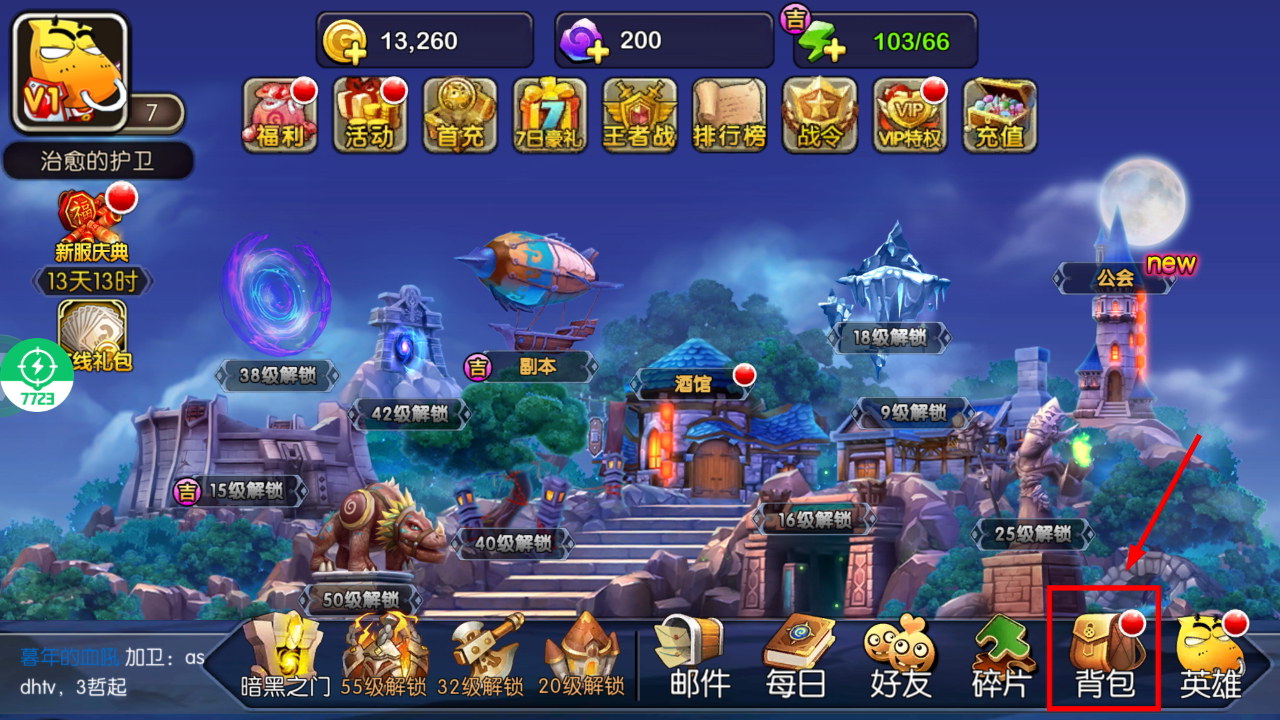 1、在主界面底部找到【背包】按钮并点击,可进入道具管理界面查看所有持有物品,为后续操作做准备。