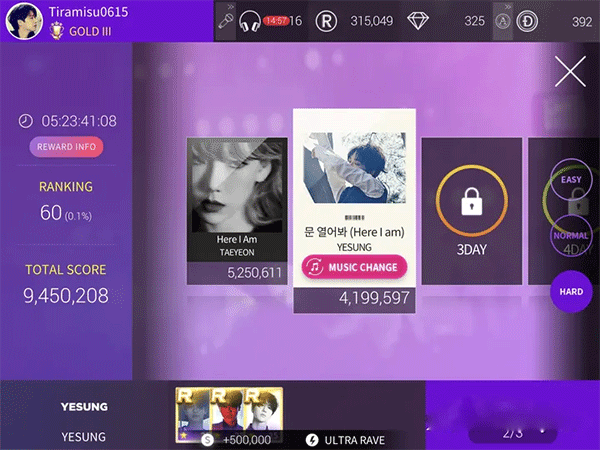 打歌其实没什么好说的,每首歌有easy, normal, hard三个模式,选择你想玩的歌和你能承受的难度就行。