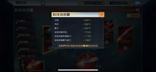 二、在较高的战力下,可优先将科技上方的红条升满,该红条升满对实际战力提升巨大,远胜飞机及机组在空优四机满后的提升