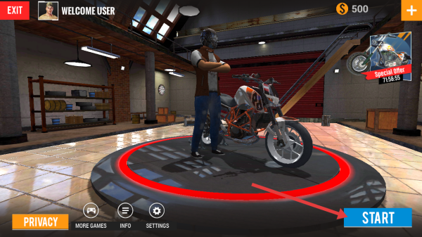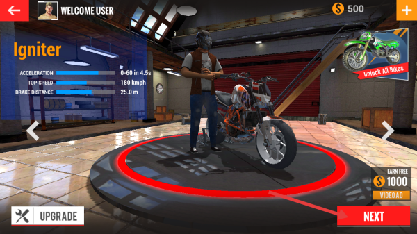 2、查看摩托车属性后,点击右下角红色【NEXT】按钮,进入模式选择界面。