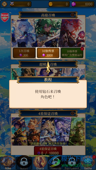 2、在这里玩家可以使用钻石来购买不同的召唤机会,来抽取各种各样的卡牌角色。