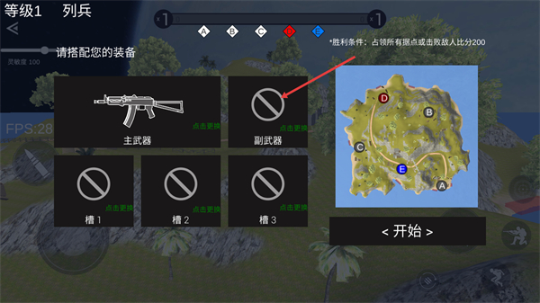 1、在装备搭配界面选择【主武器】,点击副武器按钮。