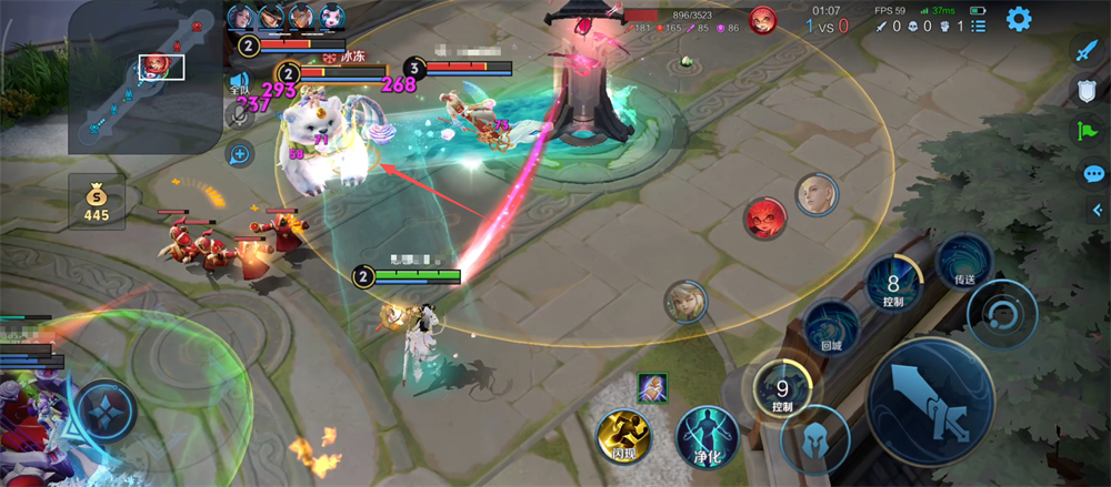 4、若敌人追击我方残血队友,要及时使用控制技能留人,保护队友并反打取胜吧。