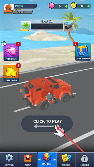 1、点击【CLICK-TO-PLAY】按钮,进入【Level-01】关卡,开启游戏对局。
