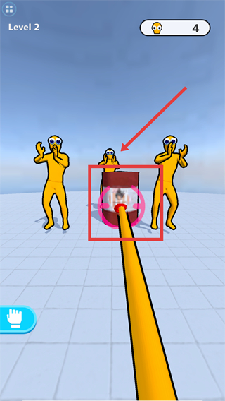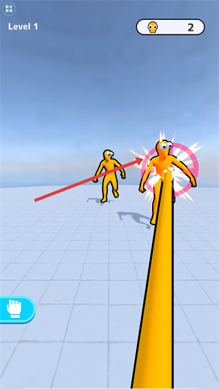 3、在【Level4】场景,攻击触发红色手掌技能,将其转圈一巴掌打飞所有黄色敌人。