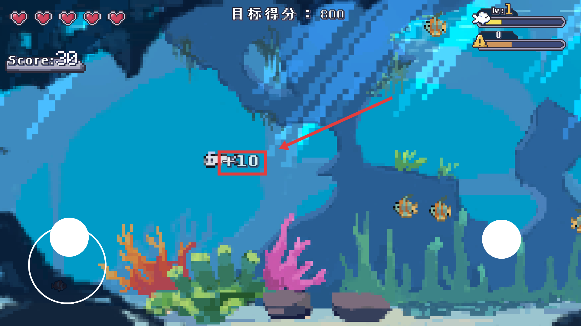4、完成目标鱼类收集后,可获得【+10】的得分,持续收集以达成关卡的【目标得分:800】。