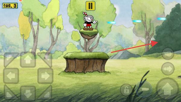 2、操控角色跳上树桩平台,点击右侧跳跃按键,向高处悬浮平台移动,尝试获取上方道具。
