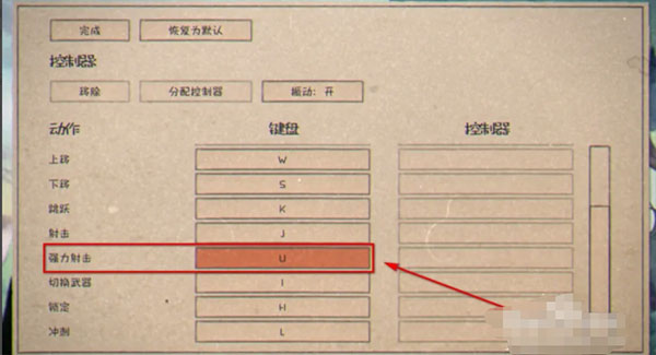 2、进入之后会有键盘的使用,将强力射击调到自己习惯的键位;