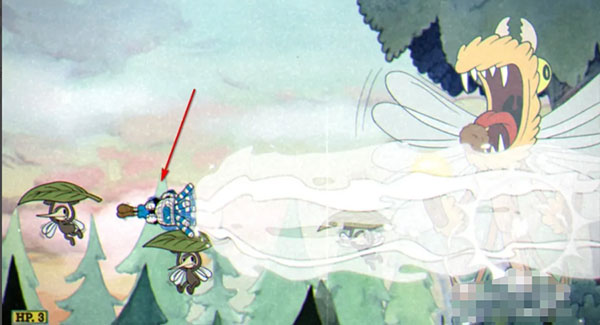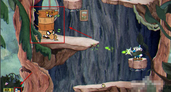 2、发射橡果,boss预备发射期间,人物向左边移动,然后跳到最左边的杯子上,最终再冲刺回来。