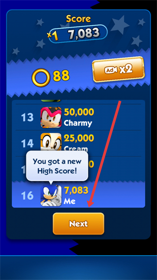 4、在得分榜单界面点击Next按钮,进入下一局游戏继续挑战新关卡。