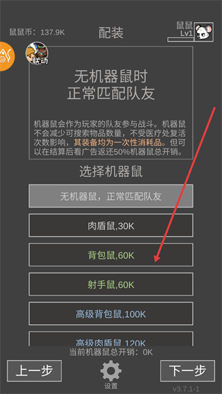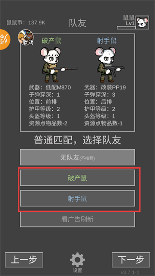 4、普通匹配可选择【破产鼠】、【射手鼠】为队友,点击下一步。