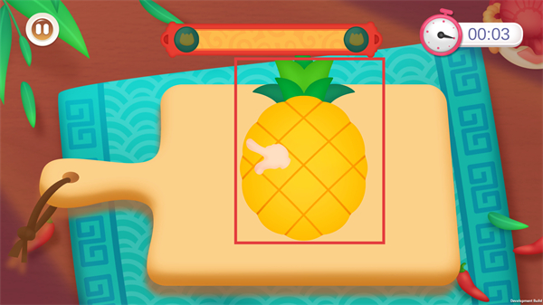 1、操作时点击【菠萝】开始剥皮,注意界面上方的【时钟】显示时间,确保在规定时间内完成该步骤。